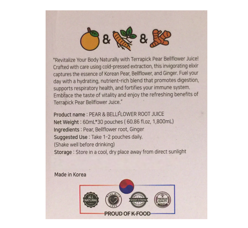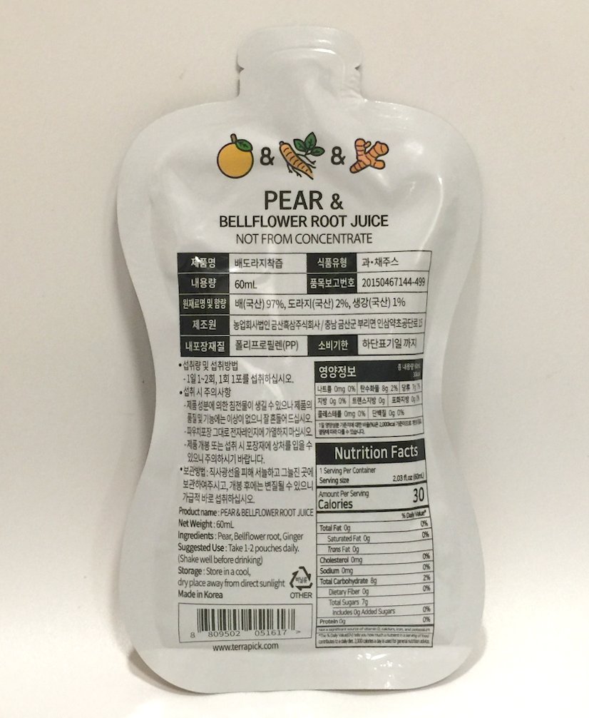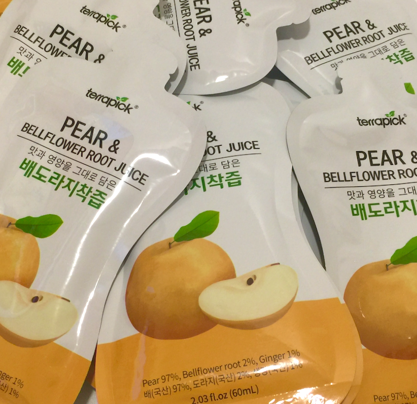 • 仅使用韩国梨、桔梗和生姜,在方便袋中榨出 100% 鲜榨果汁