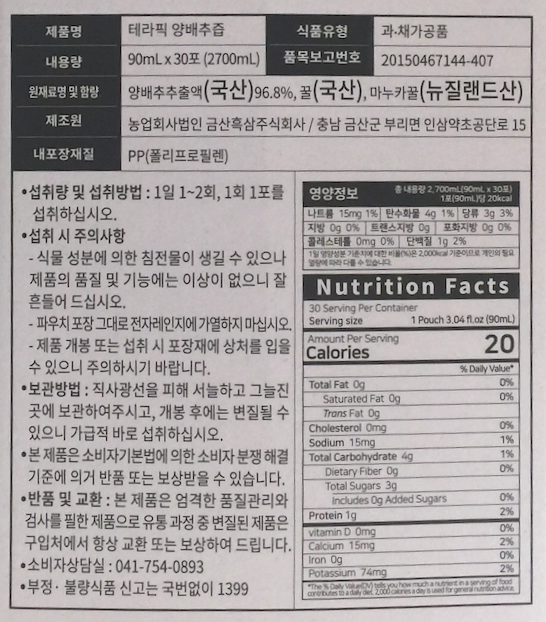 • 采用无农药种植的韩国白菜制成,营养丰富的方便袋装白菜汁